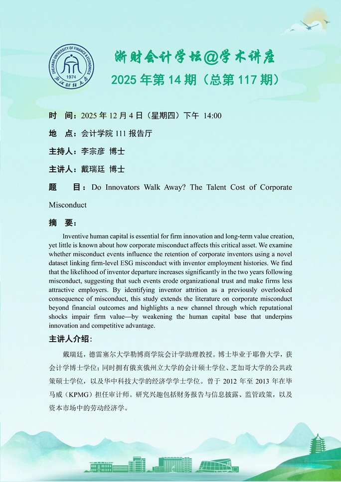 下一条:浙财会计学坛@学术讲座2025年第13期(总第116期)——张春秋博士