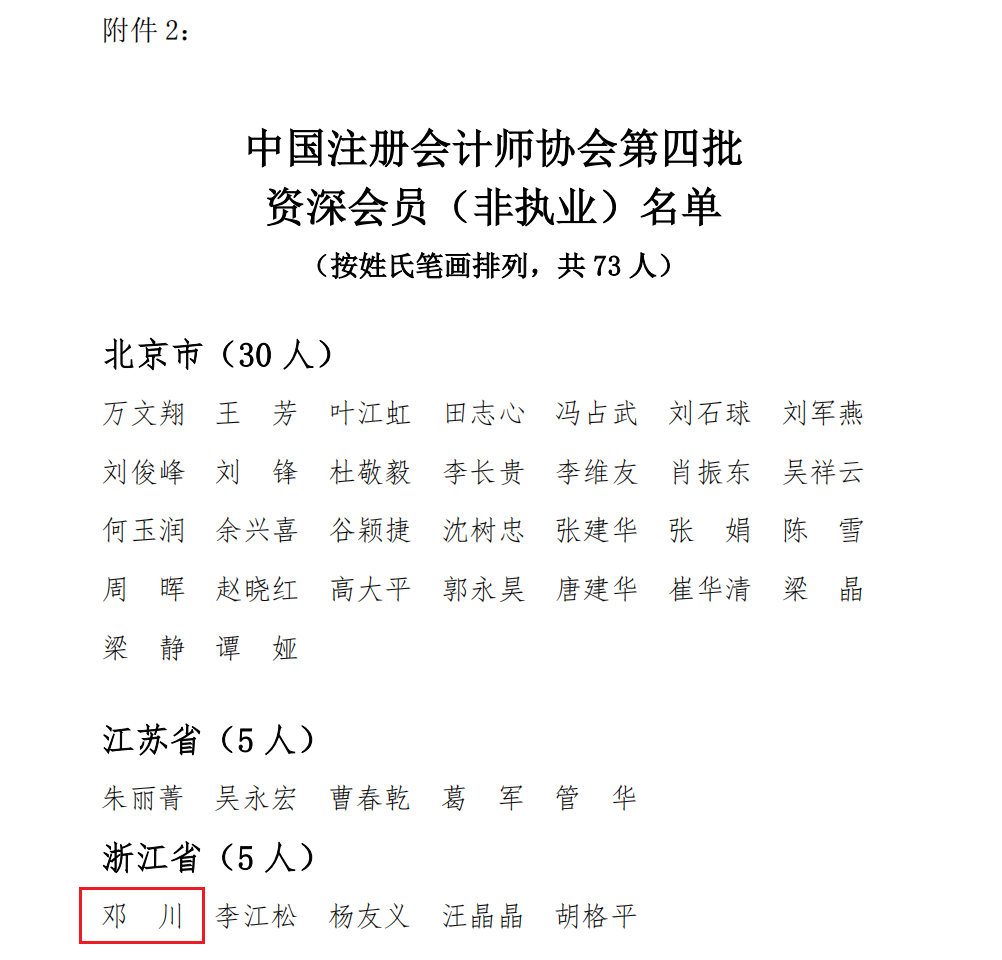 日前,中国注册会计师协会完成第四批资深会员人选的推荐审核工作,经网上公示和第六届理事会审议通过,共计490人入选。我院邓川教授入选中国注册会计师协会资深会员(非执业)。