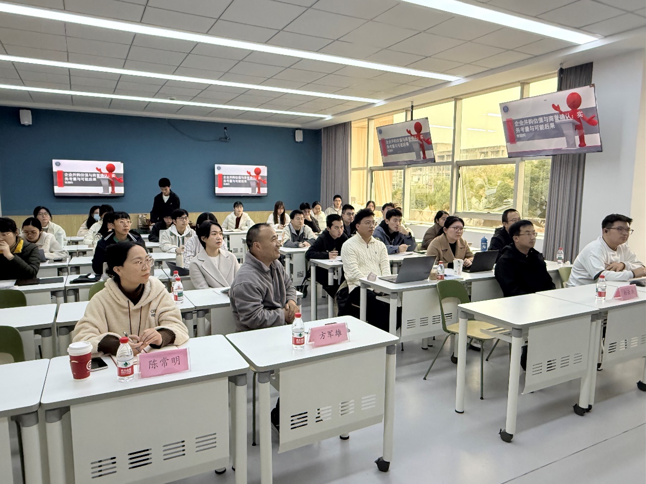 12月2日下午,浙财会计学坛@业见讲堂2025年第1期(总第4期)在会计学院201教室顺利举行。本期讲堂特邀张国昀博士与我院江雨佳博士担任主讲嘉宾。本期讲堂由会计学院方军雄教授主持,会计学院教师和会计专硕学生参与了本次讲堂。