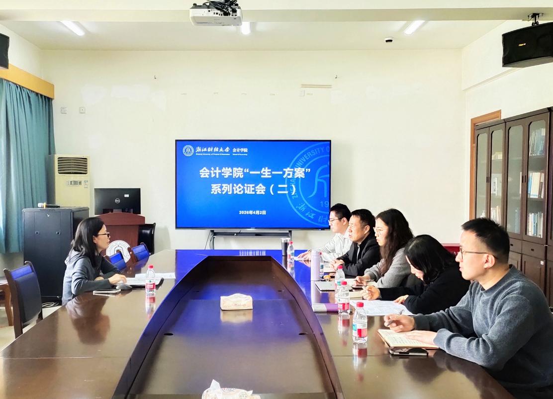 会上,王会娟副院长传达了学校“一生一方案”人才培养模式改革工作推进会会议精神,带领与会教师深入研读了《浙江财经大学“一生一方案”人才培养模式改革实施方案(2026-2028年)》和《浙江财经大学本科人才培养项目管理办法(试行)》两份征求意见稿。在讨论环节,与会教师结合教学实际,对两份文件进行了细致剖析,重点探讨了“平台+项目”课程体系打造、AI全链赋能、“三位一体”团队组建、“铁三角”管理组织完善、考核奖惩机制等核心内容,并就学院层面的初步实施方案进行了研讨,明确了后续工作的具体安排。