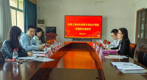 4月24日下午,上海对外经贸大学会计学院副院长何开刚一行三人莅临我院考察交流。会计学院副院长王会娟、审计系主任张广冬、国际会计系主任成畅参加座谈交流。