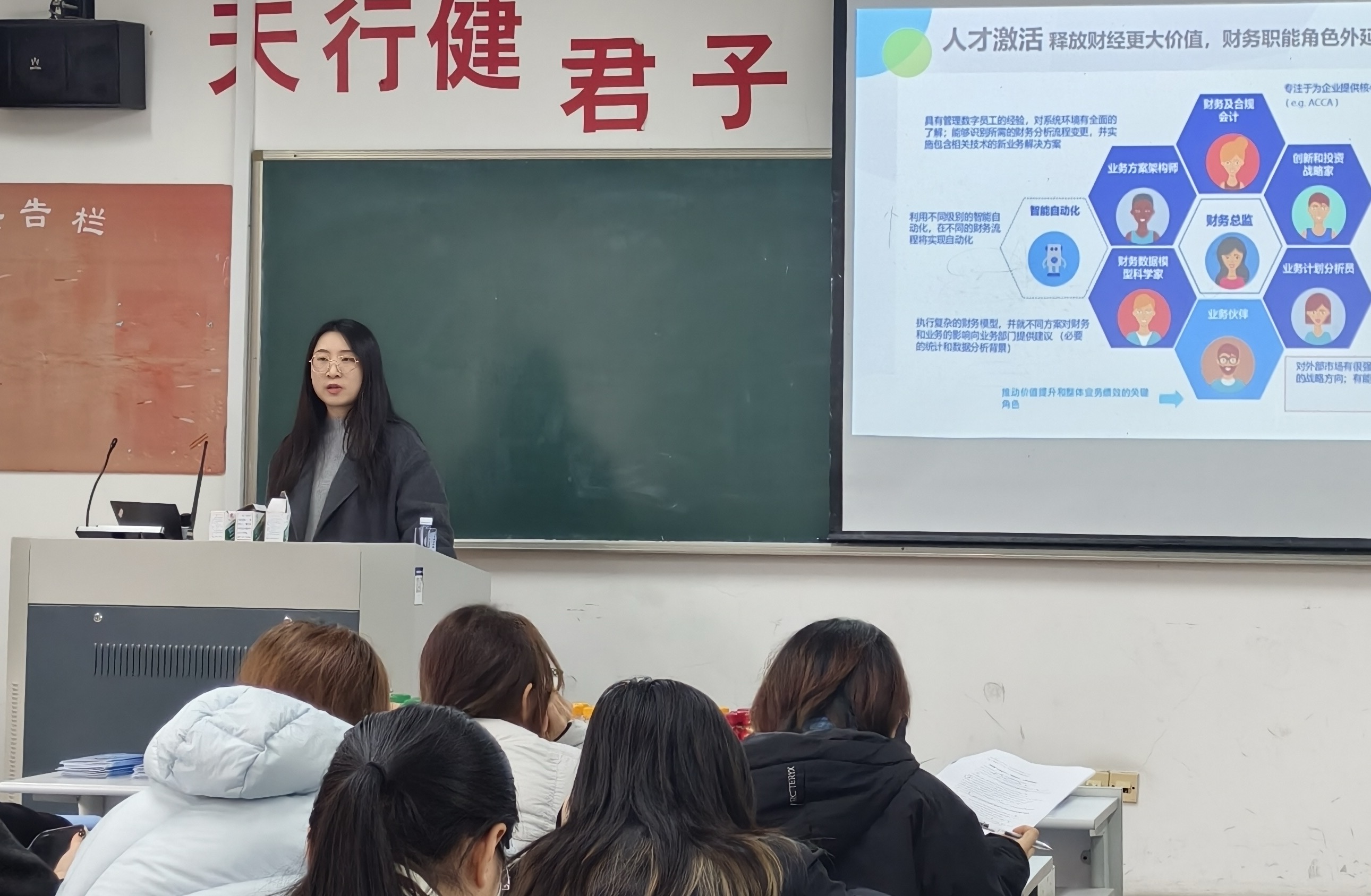 2026年3月17日下午,由浙江财经大学学生国际会计学会主办的ACCA JHC大赛×新希望企业宣讲会在会计学院106教室举行。活动邀请ACCA上海代表处助理教育关系经理何碧娟、杭州新希望双峰乳业有限公司财务总监高佳羽走进校园,围绕赛事变革与财会人才职业发展路径展开分享。会计学院副院长王会娟主持活动。