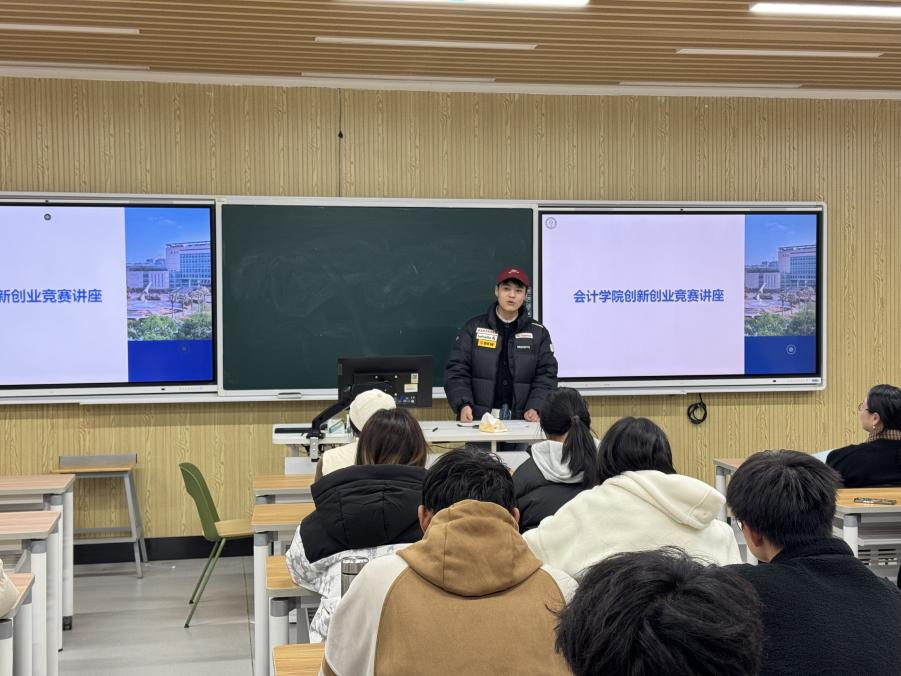 12月3日,会计学院“会创菁英”训练营之竞赛辅导专题讲座在207教室举行。本次讲座邀请学院党委书记张虹作专题辅导,国家级获奖项目团队负责人尚杰一分享经验,吸引了众多竞赛项目和有意参加竞赛的同学踊跃参加。