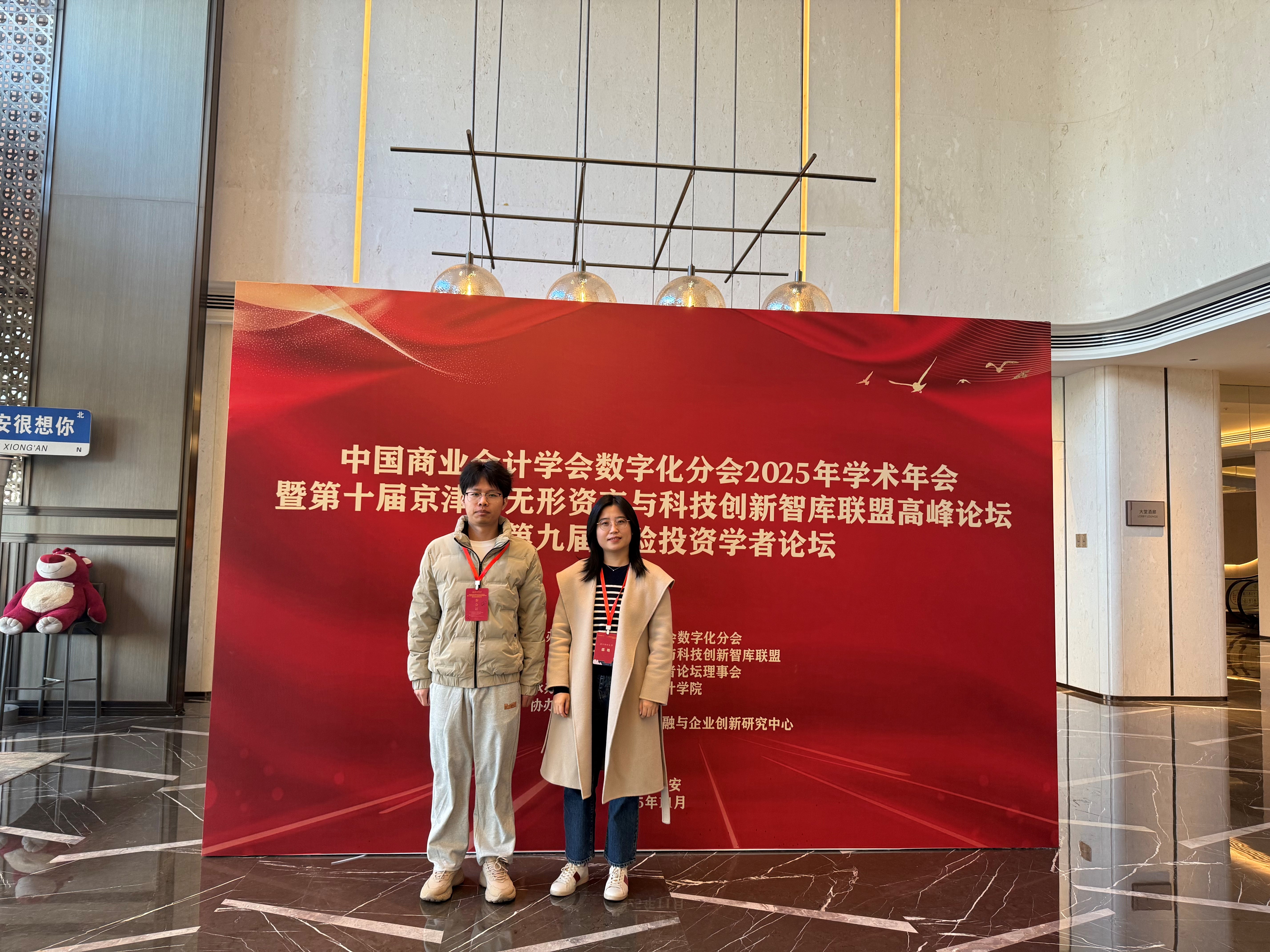 2025年11月15日,中国商业会计学会数字化分会2025年学术会议暨第十届京津冀无形资产与科技创新智库联盟高峰论坛暨第九届风险投资学者论坛在河北省雄安新区举行,我院23级会计学专业研究生朱伟和导师邵艳老师参加了此次线下论坛。本届会议为深入贯彻党的二十届二中、三中全会精神,全面落实国家创新驱动发展战略,推动会计学科创新发展,促进京津冀协同走深走实,探索风险投资在服务科技自立自强、培育新质生产力中的核心作用,由中国商业会计学会数字化分会、京津冀无形资产与科技创新智库联盟和中国风险投资学者论坛理事会主办,河北经贸大学会计学院承办,河北省会计学会协办。
