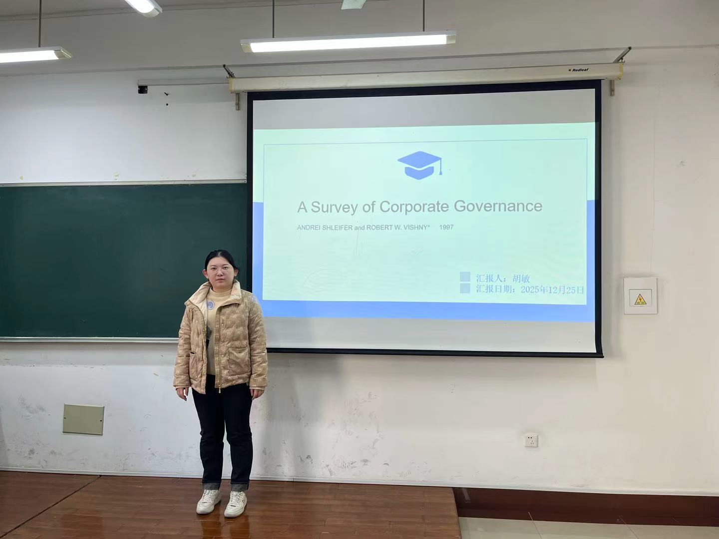 其次,胡敏向我们分享了论文《A survey of Corporate Governance 》。该篇文章是哈佛大学教授安德烈·施莱弗与芝加哥大学教授罗伯特·维什尼于1997年发表的,文章指出,解决企业所有权与控制权分离带来的代理问题,关键在于完善的法律保护与有效的大投资者监督。研究揭示,管理者可能通过关联交易、过高薪酬、固守职位等方式侵占投资者利益。单纯依靠管理者声誉或投资者乐观情绪难以持续约束此类行为。有效的公司治理依赖于两大核心机制:一是强有力的法律保护体系,特别是禁止自我交易的规则,能为股东和债权人提供追索权;二是大投资者(包括大股东和银行)的积极监督,能直接制衡管理层。然而,这两种机制各有限制。法律执行可能成本高昂,而大投资者也可能转而侵害小股东或其他利益相关者的利益。研究表明,不同国家因此形成了差异化的治理模式:美国依赖法律和敌意收购,德日则更侧重银行与企业交叉持股。该研究为理解全球公司治理体系的多样性与有效性提供了奠基性框架,强调治理安排需与一国法律环境及企业特征相匹配。