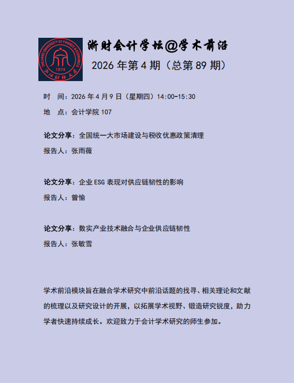 下一条:会计学院“研究生学术前沿”2026年第三期顺利举行